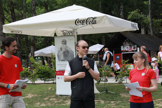 张宪一大使向各位来宾介绍了端午节的由来,希望端午节划船比赛能长期落户布莱德湖,成为孔子学院的品牌活动。Janez Fajfar市长对孔子学院选择在该市举办端午节庆祝活动表示高兴和感谢,他邀请孔子学院每年都固定在布莱德举办端午节划船比赛,并祝比赛取得圆满成功。卢布尔雅那大学孔子学院中斯院长对各位嘉宾的到来表示感谢,并允诺以后每年端午都在布莱德湖举办端午节庆祝活动。
