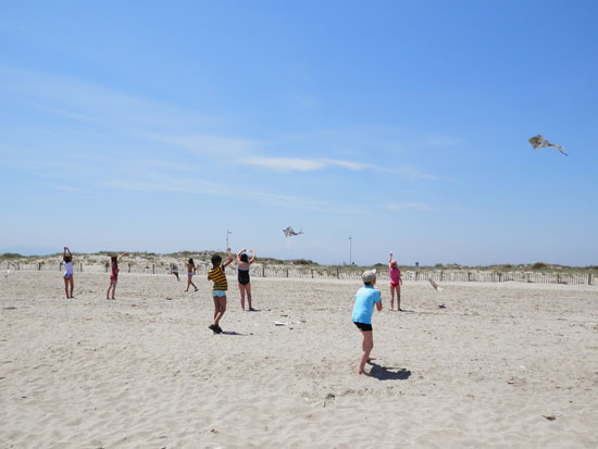 为了让风筝能够飞的更高更远,学校专门将孩子们带到海边试飞,三十多名学生手持线圈,看着自己的风筝飞翔在蓝天,喜悦之情溢于言表。活动的最后,学生们进行了风筝比赛,CM2的Maxime最终以其完美的表现获得了冠军,他制作的风筝不仅平衡性好,而且也飞的最高最远。