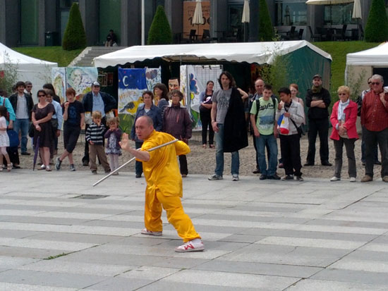 和往年的活动一样,每个语种都会有才艺表演。汉语也不例外。由于受舞台的局限,来自孙悟空武术学校的武术爱好者们在广场上表演了精彩的武术,赢得现场阵阵热烈的掌声。