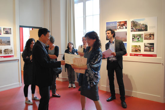 图片展开幕式由法方院长Blaise Thierree先生主持,中方院长王丽萍教授作为评委代表致辞。她介绍了本次大赛评委在评选时考量的几个因素,包括“看中国”的主题、摄影技术与照片质量、视角构图、光线处理、原创性等几个方面,同时盛赞参加本次摄影比赛图片的质量。140幅图片从不同的侧面反映了中国的人文和自然风光,不同地域、不同民族、城市乡村、百姓衣食住行、学习娱乐劳作、信仰祈愿,甚至国宝熊猫的生活,都在不同的图片中展示出来。观众可以从这些图片中能读到不同中国人的幸福快乐、恬静安逸、坚韧沧桑、忧郁与无奈。孔子学院组织了五位专家评委对参赛图片进行了两轮评审,最终评选出一、二、三等奖各一名,优秀奖五名,并向获奖者颁发了奖状及奖品。