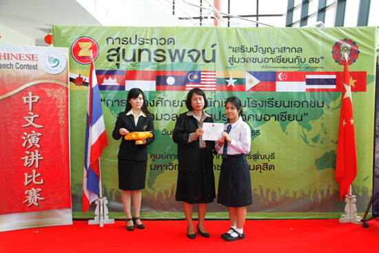 7月14-15日,川登喜皇家大学(Suan Dusit Rajabhat University )素攀孔子学院成功举办泰国中西部地区校园演讲比赛,拉开了2012年中国文化大观园系列活动的序幕。泰王国教育部民校教育委员会特别政策教育处处长Chunchom Khamhomkul(陈川川)、川登喜皇家大学素攀分校校长Sopapan Amatadecha (索帕潘)、川登喜皇家大学素攀孔子学院泰方院长Churdchin Sookplang(车琴)、中方院长张秀娥出席开幕式。