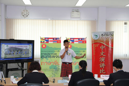 素攀孔子学院是汉语初、高中组别的主赛场,共计50多名选手报名参与角逐。选手们虽然鲜有长期的汉语学习经历,但在各校泰国本土汉语老师及中国汉语教师志愿者的帮助辅导下,都圆满地展现了自己的风采。抑扬顿挫的发音、铿锵有力的呐喊、大方得体的手势无不展示着他们对比赛的热衷,对汉语的热爱,评委们神采奕奕、观众们掌声如潮。最终,来自佛丕府Ratwittaya Schoo(光中公学)、叻丕府Daruna Ratchaburi School的选手囊括初中、高中组别的前两名。