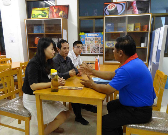 到访官员参观普吉孔院素叻分部并主动了解普吉孔院的工作职能与机制,得知普吉孔院一直致力于汉语和文化的推广,并积极促进中泰文化经济交流等情况,该项目官员表示日后素叻政府将积极支持普吉孔院的汉语和文化推广工作,并希望普吉孔院能够继续为素叻旅游事业发展提供中文支持。座谈中,项目官员还饶有兴趣地向汉语教师学习旅游汉语短句。