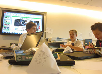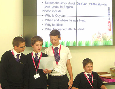 伴着悠扬舒缓的古乐,介绍端午节由来的视频渐渐吸引了学生们的注意。通过观看视频和上网搜索,他们不仅了解到了战国时期风起云涌的历史风貌,更感受到了屈原赤诚的爱国热情。在随后的环节中,他们通过生动的讲解和表演再现了屈原的故事。由于适逢伦敦奥运会即将到来之际,学生们还充分发挥想象力,以《屈原来到奥运会》为题,创作了风趣幽默的小剧本,给课堂带来了阵阵欢笑和惊喜。