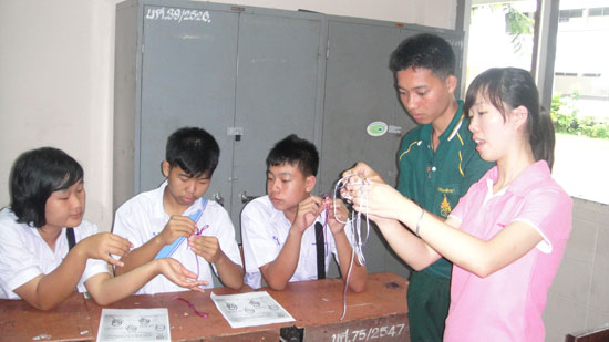7月14日,来自泰国湄丰颂府迈萨良县MaesariangBoripat School,Maelanoi School,Chalermart School,Sobmei School等四所学校共200名学生参加了本次汉语营活动。这是清迈大学孔子学院应泰国第34教育局局长的邀请,专门在结束了7月13日的泰北国立学校中学生汉语桥比赛后,赶往离清迈200公里外的湄丰颂府为地处泰缅边境的学生们举办的汉语营活动。受汉语热的影响,这些学生所在的学校开始设置汉语课,但受有限的师资力量和汉语教学资源制约,学生们无法在学校很好的体验中国文化。第34 教育局与清迈大学孔子学院有着良好的合作关系,他们想到请孔子学院去做汉语营来帮助解决这个问题。