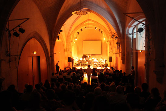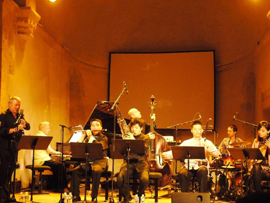 西方乐器与中国古典乐器结合,共同演奏爵士乐,这个创意非常别致。2012年夏季,八位中法音乐家相聚普瓦提埃,用心灵奏响文化交融之音。法国普瓦提埃大学孔子学院与普瓦提埃市政府共同筹办的《亦在此处 亦在此时》音乐会在普瓦提埃圣日耳曼音乐厅成功举行,共吸引200多名观众入场观看。普瓦提埃市主管文化的副市长Le compte先生和孔子学院理事长阿兰明柳为音乐会致辞,认为这次活动是一个完美的中西方艺术的结合,也是市政府和孔子学院联手打造文化盛宴的典范。