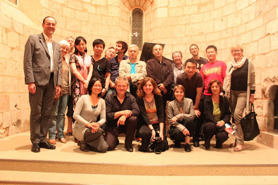 普瓦提埃市副市长Le compte 先生、理事长阿兰明柳、乐队成员和市政府、孔子学院工作人员合影