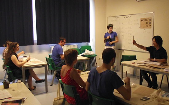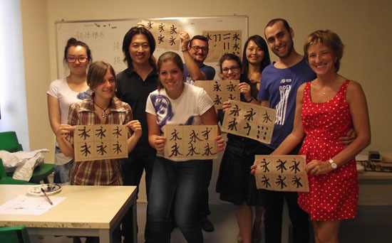 7月11日下午两点,在欧洲设计学院的OPENDAY活动中,米兰国立大学孔子学院一行4人,在玛万琳(Marta valentini)老师的带领下,举行了专场书法讲座。来自米兰国立大学孔子学院的傅海峰老师为好奇的听众们讲解了中国书法艺术的发展历史,并现场演示了毛笔字的书写,听众们都学得兴趣盎然,表示非常愿意进一步了解和参与米兰国立大学孔子学院的语言文化课程。