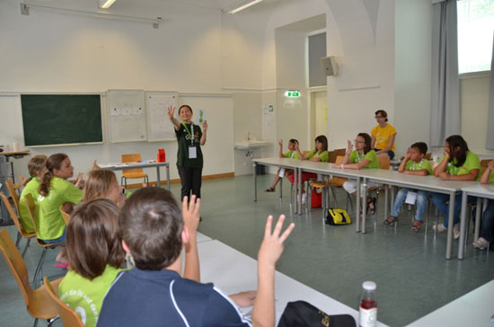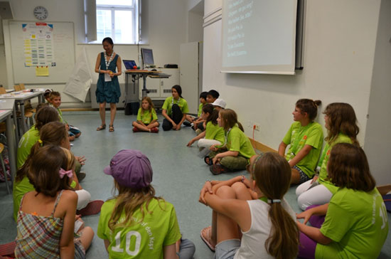 7月的维也纳遇上难得的盛夏,维也纳大学的暑期校园却有着一道清新靓丽的风景线。一群群身着荧光绿色T恤,兴高采烈的小孩子们特别引人注意,他们是维也纳第十届“儿童大学”的“小大学生”们。