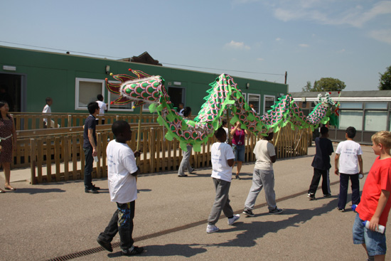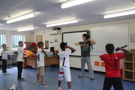贝文中学是一所男生校,该校常年与伦敦中医孔院合作,在全校范围内开展中文课教学。今年4月,该校喜夺“桂冠”,成为孔院旗下又一所孔子课堂。按照惯例,七年级新生夏令营于本周开营。为了让夏令营活动更加丰富多彩,贝文中学特邀孔院教师、志愿者为全体营员上了一堂精彩的汉语言课,有趣的中国龙体验课,别具一格的中国书法课,令人着迷的中国武术课。