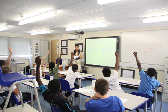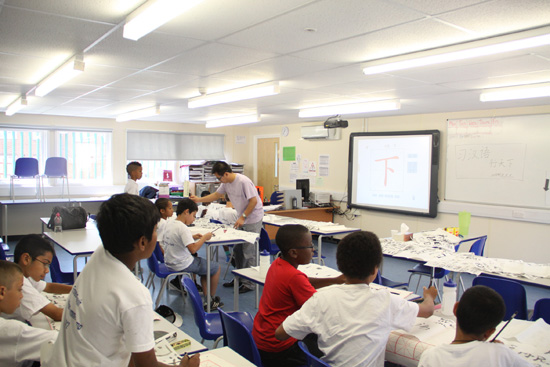 贝文中学夏令营的学生们踊跃回答汉语课上的问题