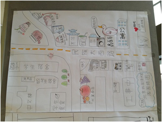 学生在北京学习期间,上午进行四个课时的课堂学习,下午进行分组语言实践,每组由四名学生构成,分别来自初级班、中级班和高级班,大家共同制定计划,共同完成语言实践。实践内容既包括了上午在课堂上学习的内容,也包含了孔子学院分配给各组的语言实践任务,如绘制生存地图;到火车站买票、退票,记录乘坐火车过程中的语言使用情况;到公院采访练太极拳的人们,了解太极拳的健身功效;到老年活动中心,了解中国退休老人的老年生活等等。两周下来,学生们的学习生活过得非常充实,不仅学到了很多地道、实用的汉语,真正实践了这些语言,还体验了丰富多彩北京生活。