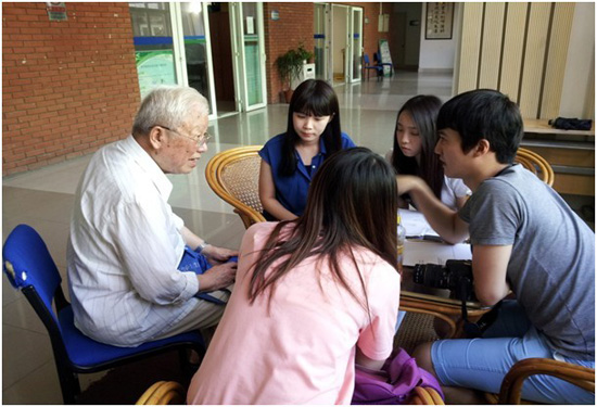 同学们去采访老年中心的老人