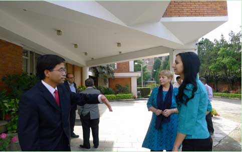 俄罗斯文化中心副主任安娜斯塔西娅•科克洛娃(Anastasia Khokhlova)和尼俄友协主席详细了解了加德满都大学孔子学院的汉语教学和中国文化推广情况。俄罗斯文化中心副主任对邀请她参加加德满都大学孔子学院五周年院庆表示感谢,赞叹这次庆典活动成功举办,对庆典上利用投影仪展示所有讲话和演出节目背景和歌词唱段的富有创意的做法深表赞赏,称在俄罗斯文化中心举办的活动中也要借鉴这一做法。通过这次活动结识了很多各界人士, 有效扩大了加德满都大学孔子学院的影响。