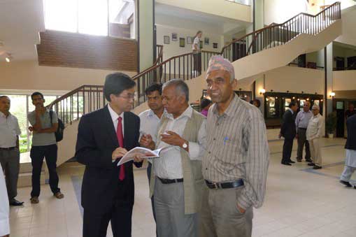 与尼泊尔蓝毗尼梵文大学教授交谈