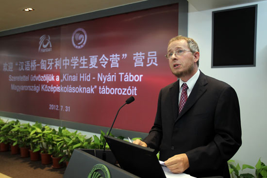 31日,国家汉办在京举行了“汉语桥-匈牙利中学生夏令营”开营仪式,仪式上匈牙利中学生蕾吉娜•科瓦奇代表同行的100名匈牙利中学生表达了对中国文化的喜爱和好奇。