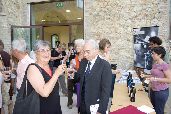 意大利前总理朱利亚诺•阿玛托Giuliano Amato与蒙特普齐亚诺市皮耶罗•克拉马德雷图书档案馆主席Silvia Calamandrei 女士在展会上品酒