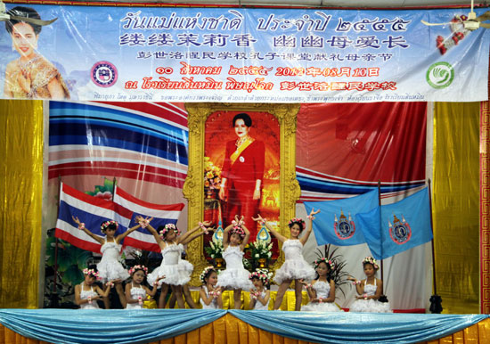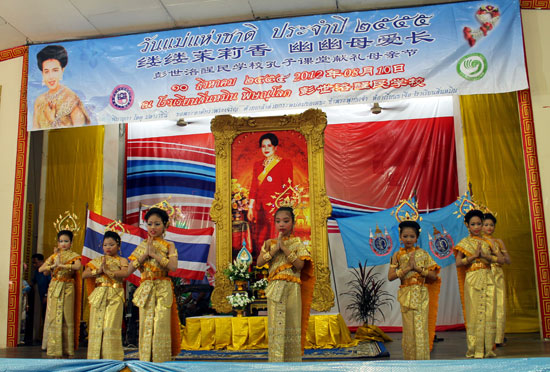 年年母亲节、岁岁敬母亲。伴随着全泰国一年一度母亲节的来临,为感谢母亲的养育之恩;同时亦为给泰国王后以及全泰国的母亲们送上节日的祝福,彭世洛醒民孔子课堂特举办了“缕缕茉莉香幽幽母爱长”泰国母亲节庆祝活动,此活动迄今为止已是第三届。醒民学校800余名师生和500多名学生家长参加了此次活动,孩子们手持亲手制作的茉莉花束,跪坐在母亲身旁。纯洁无暇的茉莉花瓣让母爱的温情蔓延到学校的每个角落;母亲对孩子们的无私奉献亦让在场的每一个人为之潸然泪下。