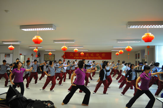 在为期两天的文化营中,学员们了解了中国的节日文化和中国历史,还学习了中国结、剪纸艺术、太极、中国民族舞蹈和中国书法。学生们最喜欢的项目莫过于太极拳了,因为学生们平时很喜欢看中国的功夫片,对中国的武术有着浓厚的兴趣和好奇心。太极拳看起来虽然动作不快,但是几套动作下来之后,同学们已经是满头大汗,他们既体验了中国武术的博大精深,又锻炼了身体。除此之外,中国结、剪纸和中国书法也深受同学们的喜爱。很多同学表示,在泰南穆斯林地区,平时很少有机会一下接触和学习这么多中国文化的东西,他们非常感谢宋卡王子大学孔子学院为他们提供了一个这么好的机会,让他们在学习汉语之余能够了解中国文化的魅力,为学习汉语注入了更多的动力。他们在离开孔院的时候,依依不舍的和孔院的老师们合影留念并表示有机会还会再参加类似的活动。参加此次夏令营的中学生大多数为泰南沙墩府的穆斯林中学生,共有37名学生。他们是第一次参加汉语言文化营活动。近年来泰南穆斯林聚居区学习汉语的学生越来越多,学校对汉语教育也越来越重视,同时他们也加强了和孔子学院的在汉语教学的联系与合作。