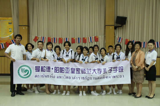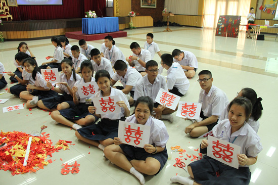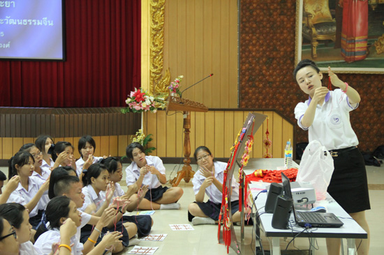 8月17日,曼松德.昭帕亚皇家师范大学孔子学院全体教师前往曼谷Watraja O Ros School 中学开展为期半天的汉语文化营教学活动。Watraja O Ros School 学校历史悠久,建校已有97年,初一到高三六个年级皆开设汉语课,每周有6节中文课,共有287名学生选择汉语作为第一外语来学习,但是像今天这样在全校范围内体验中国文化的课程还是第一次。