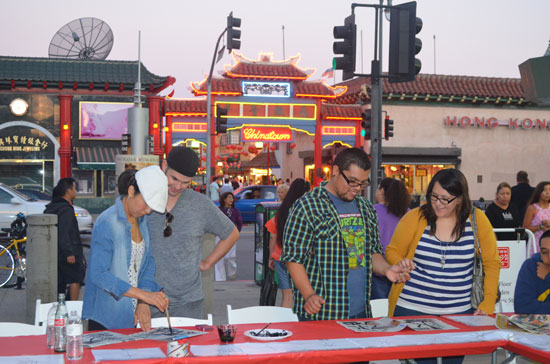 2012年8月25日,作为“中国城夏之夜”(CHINATOWN SUMMER NIGHT)大型系列文化活动的一部分,洛杉矶加州大学孔子学院在中国城举行了中国书法演示活动,吸引了无数美国市民和游客前来观摩。在孔子学院教师们的指导下,许多人亲自提笔书写汉字,在充满乐趣的临摹过程中,品味博大精深的中华文化。