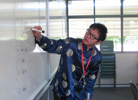 玉龙港公立中学中文教师王博在讲解简单中文对话