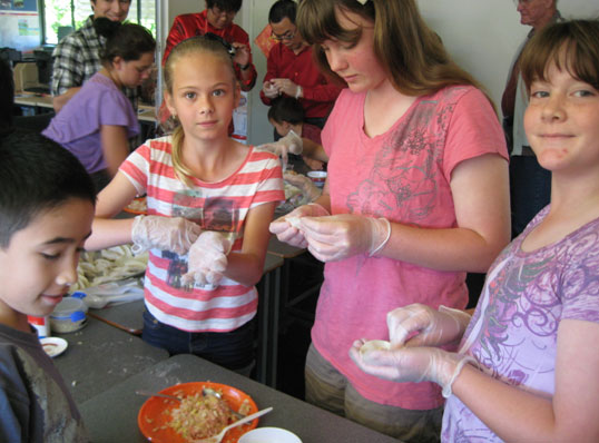翩翩起舞的蝴蝶,栩栩如生的小鱼,憨态可掬的熊猫还有喜庆吉祥的红双喜……参加者不论年龄大小,都饶有兴趣的拿起剪刀尝试。包饺子体验区,我校资深助教Jenny 手把手的教大家如何做出美味的饺子。很多初学者都自豪的表示自己很有包饺子的天赋。中文会话教学区,简单的中文对话给参加者带来了很大的挑战,但是他们还是纷纷举手抢答,上台表演时也毫不羞涩。一位七年级的女生Denya,一口纯正的中文发音让所有参加者赞不绝口,许多家长都表示,将来一定要督促子女学好中文。另外,中国茶艺表演也很受大家的欢迎。