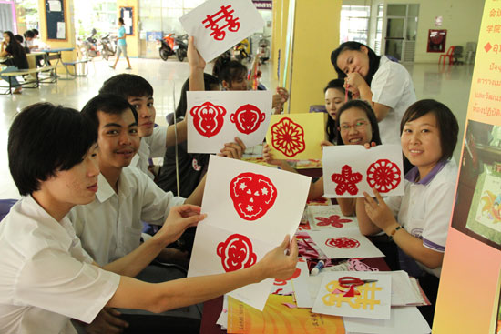 8月27日至8月31日,曼松德昭帕亚皇家师范大学孔子学院举办了一系列别开生面的中国文化宣传周活动。从周一到周四,依次进行了太极拳和太极剑、中国剪纸和中国结、中国歌和舞蹈、书法和绘画的宣传,周五则进行了全部文化活动的综合展示。
