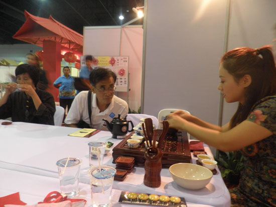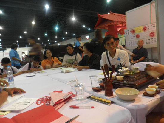9月5日至6日,在泰国曼谷蒙通他尼展览中心(IMPACT)举办的泰中医药材展览会上,应东南亚泰中医研究院的邀请,农业大学(Kasetsart University)孔子学院志愿者教师在展览会上教授中华才艺书法、剪纸,以及中国茶艺文化展示。