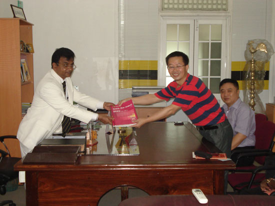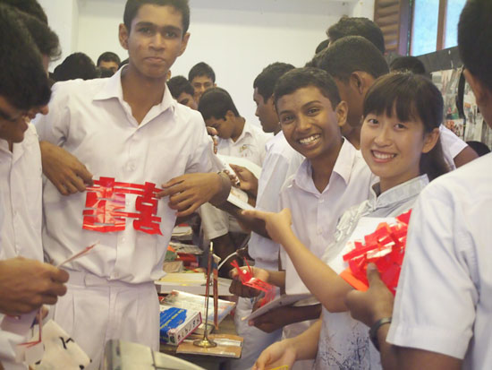 为了斯里兰卡Senanayake College男子中学新汉语教学点开班做宣传并造势,九月七日,斯里兰卡凯拉尼亚大学孔子学院的教师们在院长侯万春的带领下在D.S.Senanayake College男子中学举办了首次“中国日“活动。当天在Senanayake College男子中学的展览厅,中国国旗,中国地图,中国结,大红灯笼,脸谱,中国印象图片,太极拳学习图解,孔子学院简介,汉语有声教学挂图,汉语电子图书, 中小学汉语教材和中国文化书籍, 凯拉尼亚大学孔子学院汉语教学和中国文化活动图片,中国电影, 中国歌舞…处处都弥漫着浓浓的中国情。为配合“中国日”活动主题,展示中国传统服饰,凯大孔子学院的女教师们还专门穿上了旗袍,让学生眼前一亮。参加这一活动的师生约千人, 极大地激发了该校师生们学习汉语,了解中国文化的热情和兴趣。