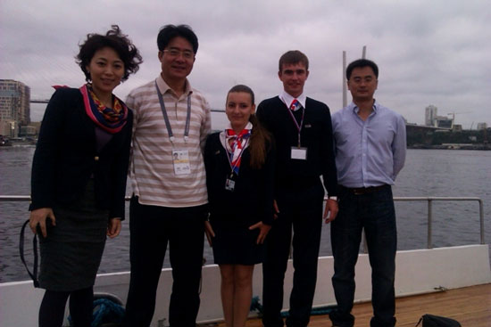 9月7-9日,在俄罗斯符拉迪沃斯托克市举行了亚太经合组织第二十次领导人会议,参加此次峰会的有来自中国、俄罗斯、日本、韩国等20余个国家首脑。在如此大型的国际会议中不可缺少的是服务大会的志愿者,远东联邦大学孔子学院学生达莉亚、萨沙经过严格筛选,荣幸地入选志愿者的队伍中。