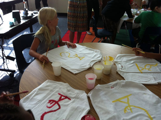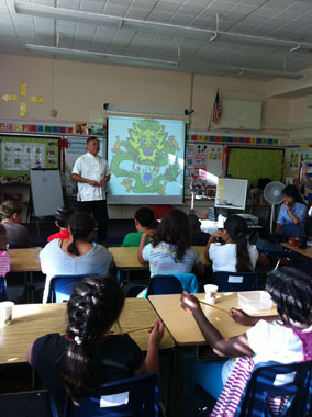 9月14日上午,圣大孔院在所辖孔子课堂的巴纳德汉语磁性项目小学举办了第二场书法推介活动。周斌教授给学生们现身说“法”地介绍了书法艺术。为了纪念龙年,他还书写了“龙”字的各种古文字形式。孩子们在他手把手的指导下进行了汉字临摹,并用毛笔在白色T恤衫上用多种颜色写下了“龙”字。周教授的介绍和演示,让同学们有机会欣赏到中国书法的古老形式,亲身领略了中国书法的现代神韵。有些孩子说,他们不但获得了丰富的中国文化知识,还与周教授在一起度过了一段梦幻般的时间。