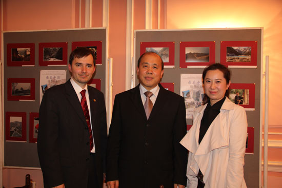 谢小用总领事招待会前参观“最美中国”摄影展