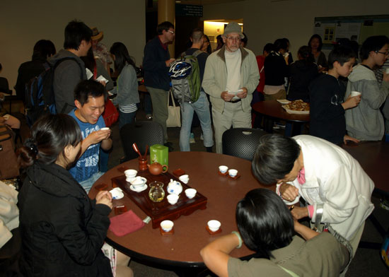会后,孔子学院的老师们还为今天参加“中秋节”文化活动的观众们准备了美味的月饼和清香的中国茶,由孔子学院老师身着传统的中国旗袍现场为大家表演的茶道,吸引了不少中国文化爱好者围坐在一起,欣赏具有中国传统特色的茶道表演,一边品尝清香的茗茶喝香甜的月饼,一边感受来自东方的浓浓中国情。