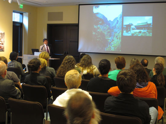 时值俄勒冈大学孔子学院周年庆典暨中秋之际,俄勒冈大学孔子学院于9月26日,特邀俄勒冈州立大学薛磊教授前来举行讲座。讲座在俄勒冈大学博物馆报告厅举办,来自大学及社区的中国文化及书法爱好者们齐聚一堂。