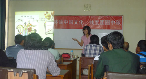 2012年9月29日,加德满都大学孔子学院举办“体验中国文化,共度团圆中秋”的文化体验活动。