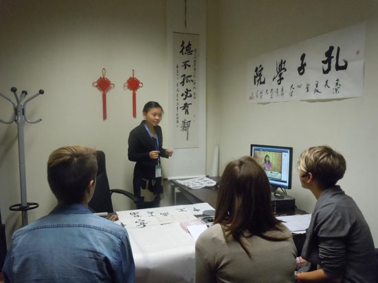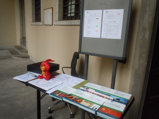 期间不断有学生前来咨询,孔院为他们提供了详尽的资料,包括各项活动的宣传页以及相关的报名表。除了对汉语感兴趣的外国学生之外,来自北京和台湾的中国交换学生也来到孔院,孔院为他们提供了语言学习伙伴以及中国校友会的活动,旨在加深中意两国学生的相互了解,增强他们之间的联系。