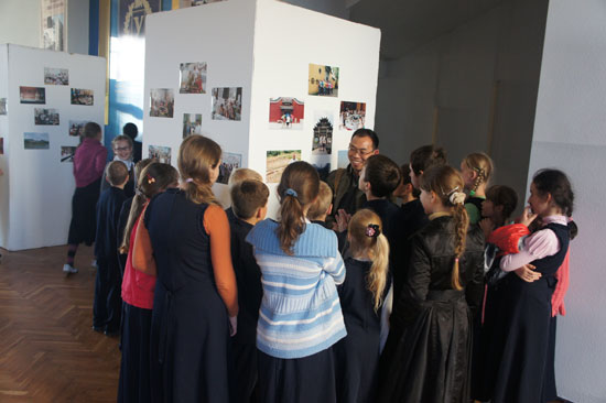 中华人民共和国建国63周年国庆日这天,哈尔科夫孔子学院举办了一次独特的图片展览,题为《哈尔科夫孔子学院师生访华见闻》。展出的照片均出自孔子学院师生们之手,是近两年夏令营的营员和校长访华团的团员访华期间的所见所闻,是他们眼中的中国城市、乡村、百姓生活、孩子们的学习、中国的文化古迹、中国的山水风光,还有他们自己的学习生活等等。照片共计63张,在中华人民共和国63周年国庆日展出别有意味。这些图片未加任何修饰,吸引了很多人驻足。很多曾经的夏令营营员也兴奋的跑过来,在图片中寻找着那时的记忆,脸上洋溢着喜悦。