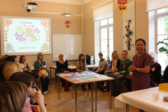 2012年8月27 日,赫尔辛基大学孔子学院的精心布置的教室里人头攒动热闹非凡。这里正在举办赫尔辛基大学孔子学院2012年校园开放日。每年临近开学的前一周孔院都会举办这样的活动,给汉语学习者提供更多的参观了解孔院所开办的各种课程,展览所用教材和教师见面,咨询汉语学习和中国文化相关的问题等,深受人们的欢迎与喜爱。