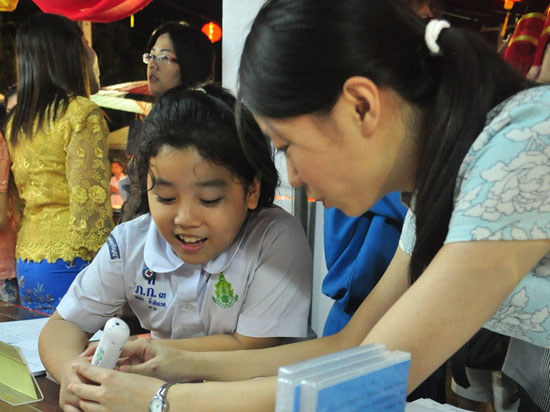 走入社会,走向民众。9月28日,“普吉孔院中秋书展”在由普吉政府主办的100多家商铺参展、10000余名游客参加的普吉中秋庙会上精彩亮相,吸引了当地民众和国外游客前来参观。手捧月饼的嫦娥仙子、精彩的葫芦丝表演吸引了国外游客驻足停留,各式汉语图书和HSK宣传手册展台被学生家长团团围住,热闹的展台吸引了普及政府项目官员德利(音译)的注意,他表示希望普吉孔院能够继续积极参与政府举办的各种活动以满足当地发展的需求。