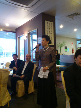 谭秀甜女士、瓦格纳女士、利文斯通先生以及埃德森教授均在联欢会上发表了讲话。谭秀甜女士介绍了中新之间的深厚友谊并高度赞扬了路易•艾黎先生(Rewi Alley)为之所做出的巨大贡献。埃德森校长代表孔院向各位来宾表示了节日的问候,并向他们介绍了坎特伯雷大学孔子学院在新西兰南岛推广汉语语言文化所取得的成就。联欢会在全体来宾齐唱中国人民共和国国歌声中进入高潮。此次宴会也同时为新中友协的“何明清奖学金”(Kathleen Hall Memorial Scholarship)筹集了善款,该奖学金旨在支助一名来自中国甘肃省的护士在克市进行培训,培训完后,将回到甘肃省为当地的百姓服务。联欢会在为何明清筹款的抽奖活动中结束。