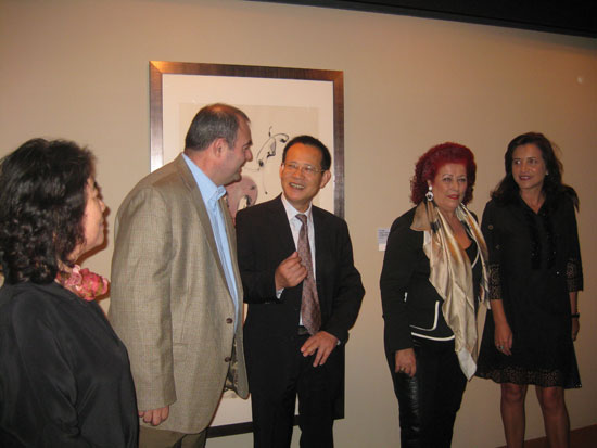 [!--allfrom--]| 在汉字绘画艺术展览现场传授书法艺术 | |