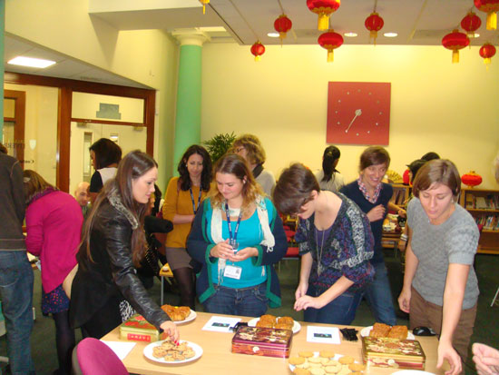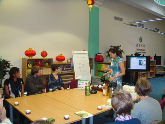 2012年10月1日,英国利物浦孔子学院举办了中秋节庆祝活动,孔子学院的志愿者教师通过幻灯片以及丰富的视频和音频,声情并茂地向现场来宾介绍了中秋节的来历、习俗以及相关的神话传说和诗词佳句,让许多的当地民众了解了这一传统佳节并领略到中国文化的独特魅力。讲座过后,在一曲《明月几时有》的伴随下,到场观众一边品尝中秋月饼,一边欣赏传统的中国茶道表演,同时,孔子学院的全体老师热情地为到场嘉宾提出的问题进行一一解答和详细讲解。