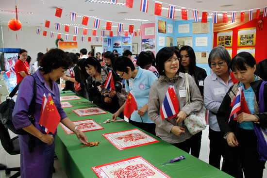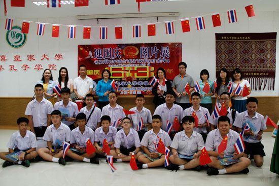 9月27日至10月9日,川登喜皇家大学(Suan Dusit Rajabhat University)素攀孔子学院成功举办庆祝中华人民共和国成立六十三周年图片展。泰国外交部官员、川登喜皇家大学泰国师生、中国留学生、岱密中学中泰方师生及素攀府周边地区泰国民众300余人参与观展。