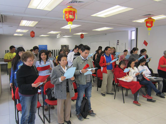 2012年10月4日,秘鲁天主教大学孔子学院于举办了庆祝中华人民共和国成立63周年的文化活动,孔子学院全体教师、工作人员与当地学生及社会人士一起参加了活动。