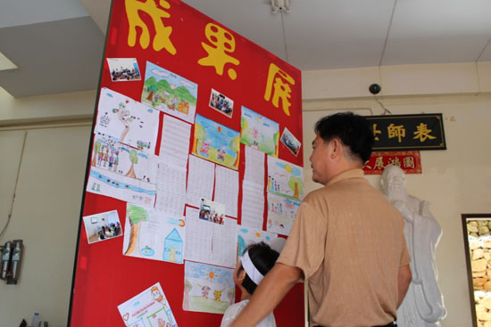 家长观看孩子作品