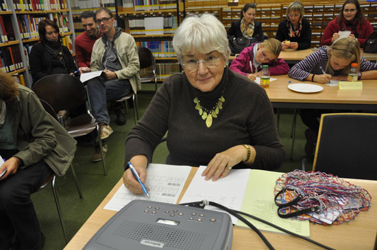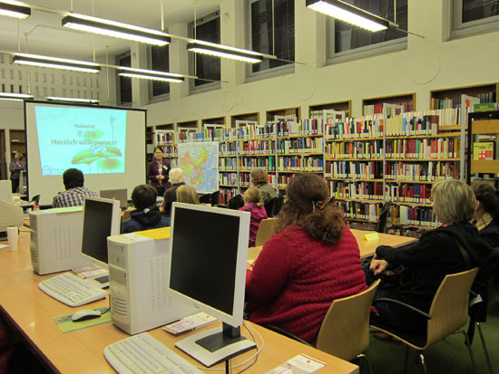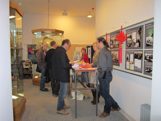 特里尔大学孔子学院作为特里尔大学的一部分,也积极参与了此次“学术之夜”活动。特里尔大学孔子学院在特里尔城市档案馆内精心布置了展台,介绍孔院的相关情况,并为前来参观的市民安排了汉语体验课,让他们近距离接触、体验学习汉语的乐趣。许多对中国文化感兴趣的市民在孔院的展台前驻足,饶有兴趣地询问孔院汉语课程、围棋比赛、电影之夜等活动的情况。二十多位市民还参加了汉语体验课,在课堂上学会了用中文问好、自我介绍、写汉字。课程结束以后,市民们纷纷表示:“汉语很有意思!汉字很美!”