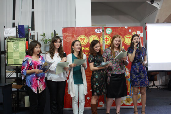 孔子学院学员的中文歌《日不落》、《两只蝴蝶》、《茉莉花》等让大家欣赏到了别具风格的音乐,孔子学院教师的剪纸艺术表演和藏族舞蹈《雪山之恋》将活动推向了高潮。活动中的小游戏《用汉语的送气音吹蜡烛》、《筷子夹花生》受到了学员的热烈欢迎。最后活动在师生和嘉宾合唱的《明月几时有》的歌声中结束。整场活动高潮迭起,始终洋溢着欢歌笑语与融融友情。