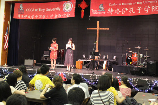 本次晚会由特洛伊大学孔子学院部分赞助,中国学生学者联谊会和特洛伊大学孔子学院主办。特洛伊大学孔子学院中方院长陈晓枫教授代表孔子学院发言,感谢中国学生学者联谊会做出的大量准备工作,并祝愿大家在异国他乡身体健康、学业有成、中秋快乐。同时介绍了孔子学院语言学习和文化宣传的功能,并表示了愿意帮助每一个中国学生解决遇到的问题与困难的意愿。
