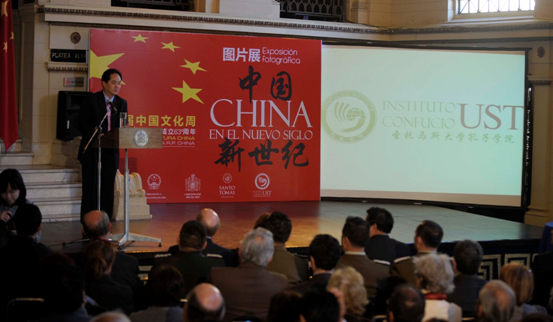 杨万明大使在致辞中表示,智利是第一个与中国建交的南美洲国家,两国在经济、文化等领域的双边合作取得了丰硕成果,并鼓励更多的智利年轻人学习汉语,了解中国文化,做中智两国友谊的使者,为两国建立更加密切的合作关系做出贡献。